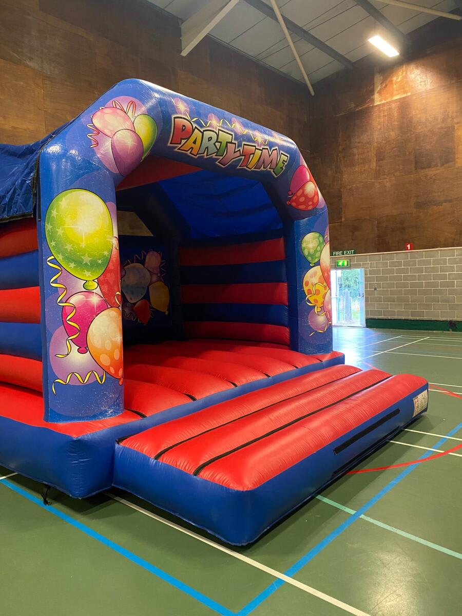 Our colourful Giant Party Time Bouncy Castle hire in Yeovil is a fantastic choice for birthdays, family gatherings and larger celebrations across