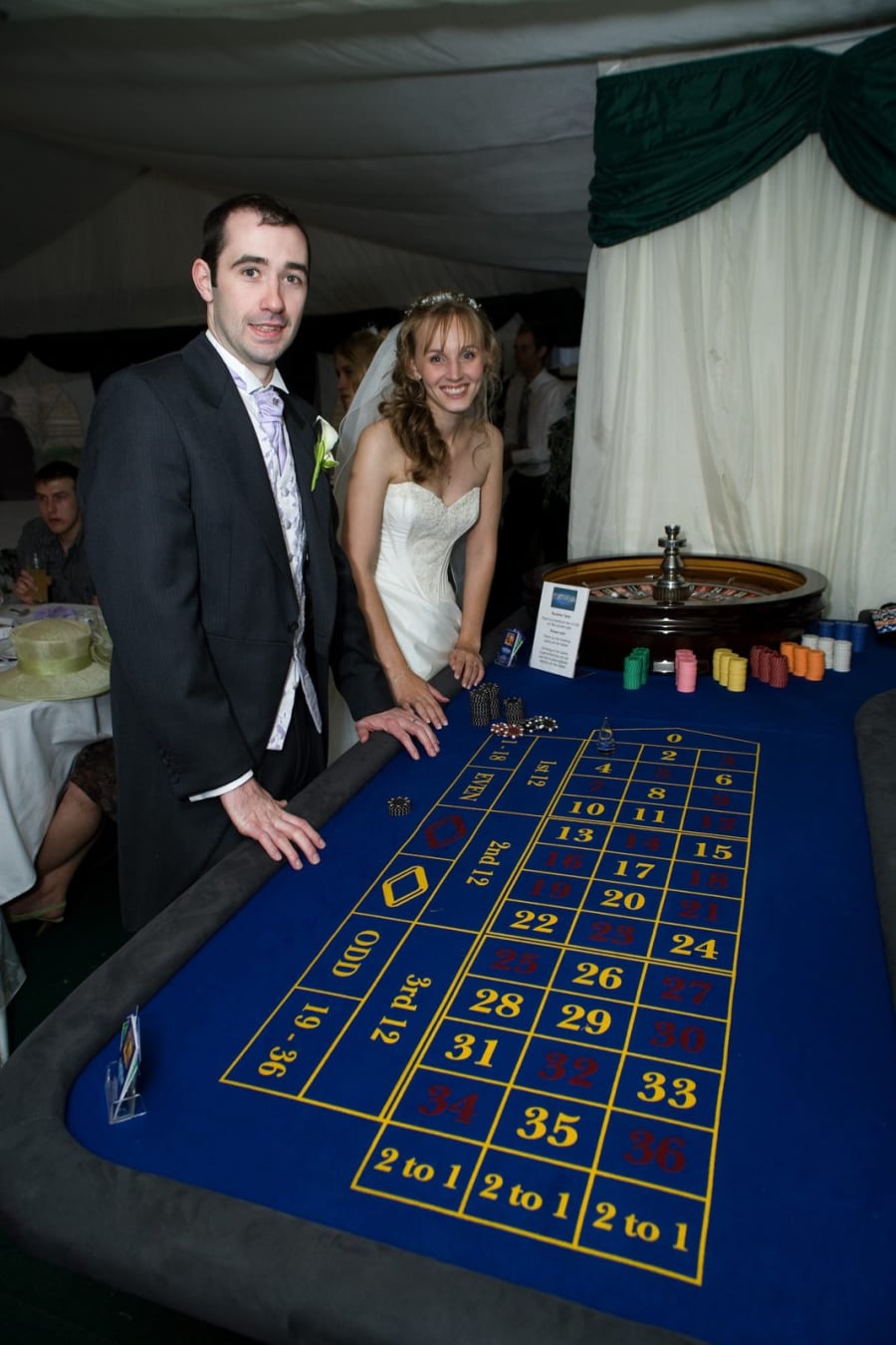 Each guest is provided with fun money or casino chips on arrival. They can then choose whichever tables they like, take part in